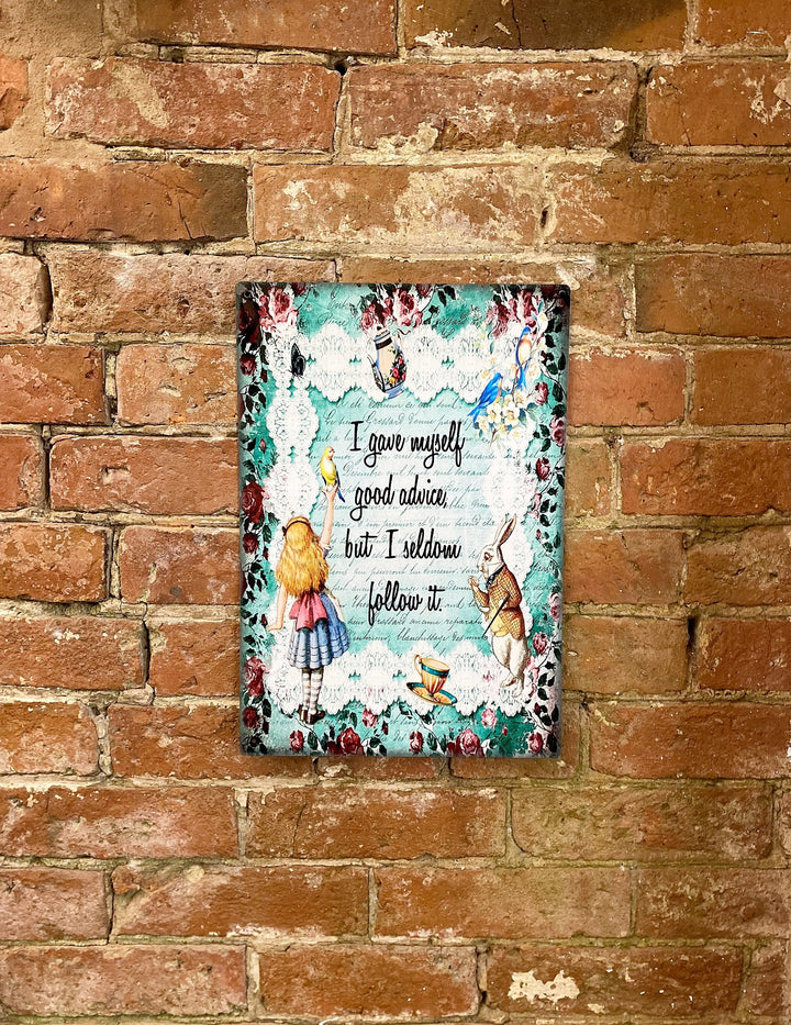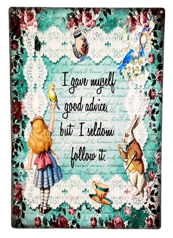 Vintage Metal Sign - Alice In Wonderland - I Gave Myself Good Advice, But