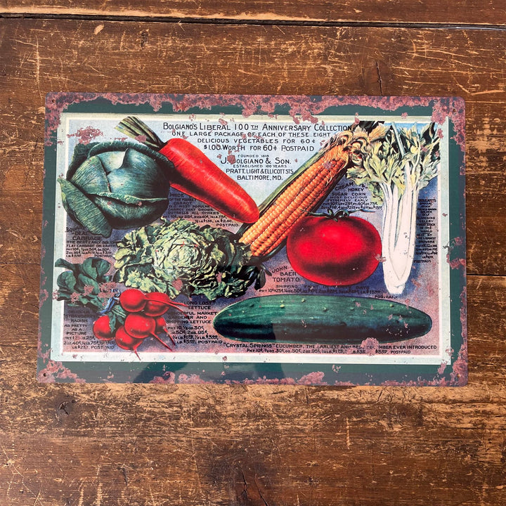Vintage Metal Sign - Retro Vegetable Varieties Sign